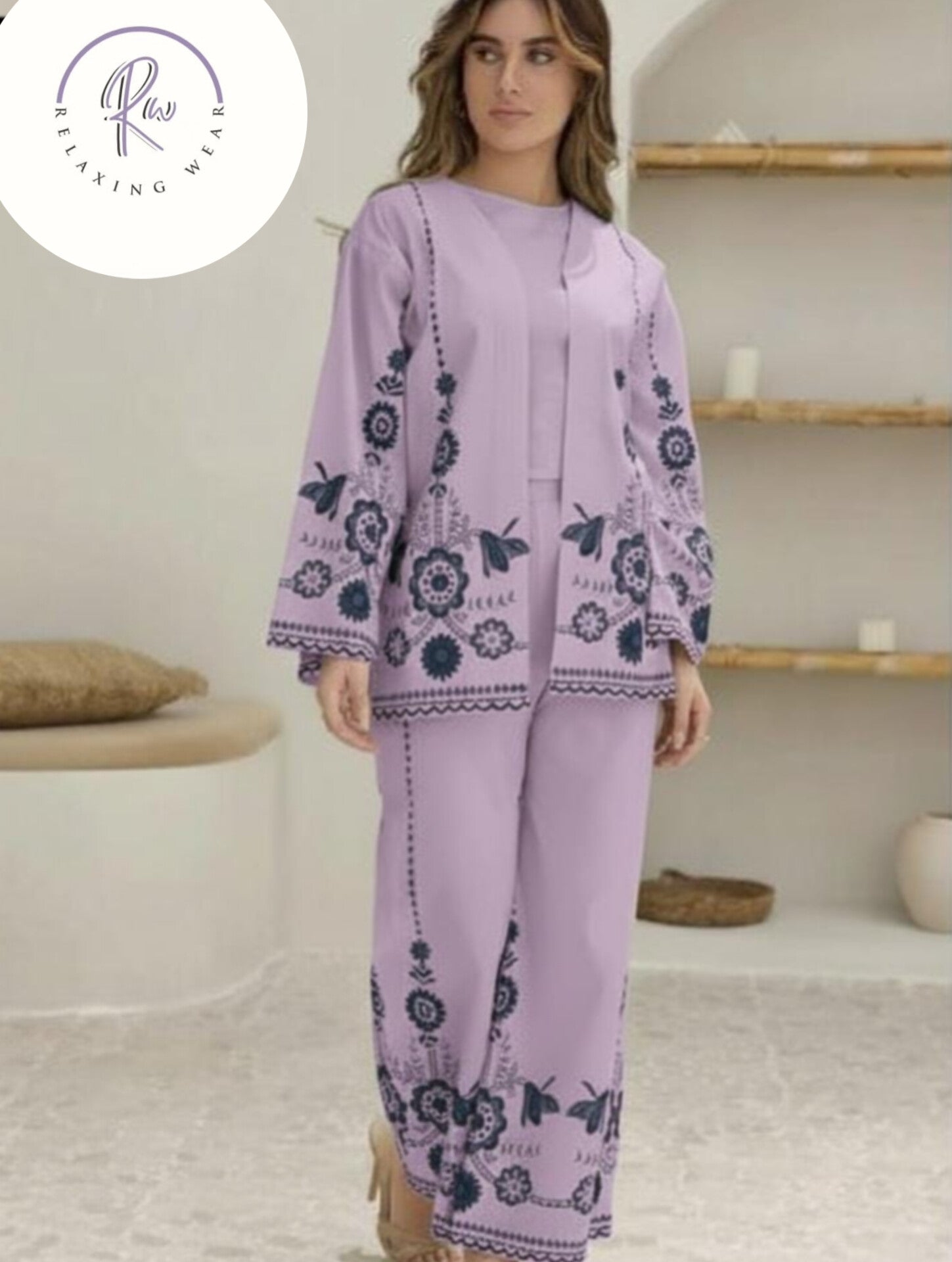 Soft, serene, and effortlessly graceful — Blush Mirage embodies the charm of quiet elegance. Crafted in a dreamy blush pink hue, this 2-piece set is adorned with intricate navy embroidery that flows beautifully across the sleeves and trouser hem. The relaxed silhouette ensures comfort, while the detailed craftsmanship adds a touch of sophistication — perfect for brunches, evening gatherings, or those days when style meets serenity.
