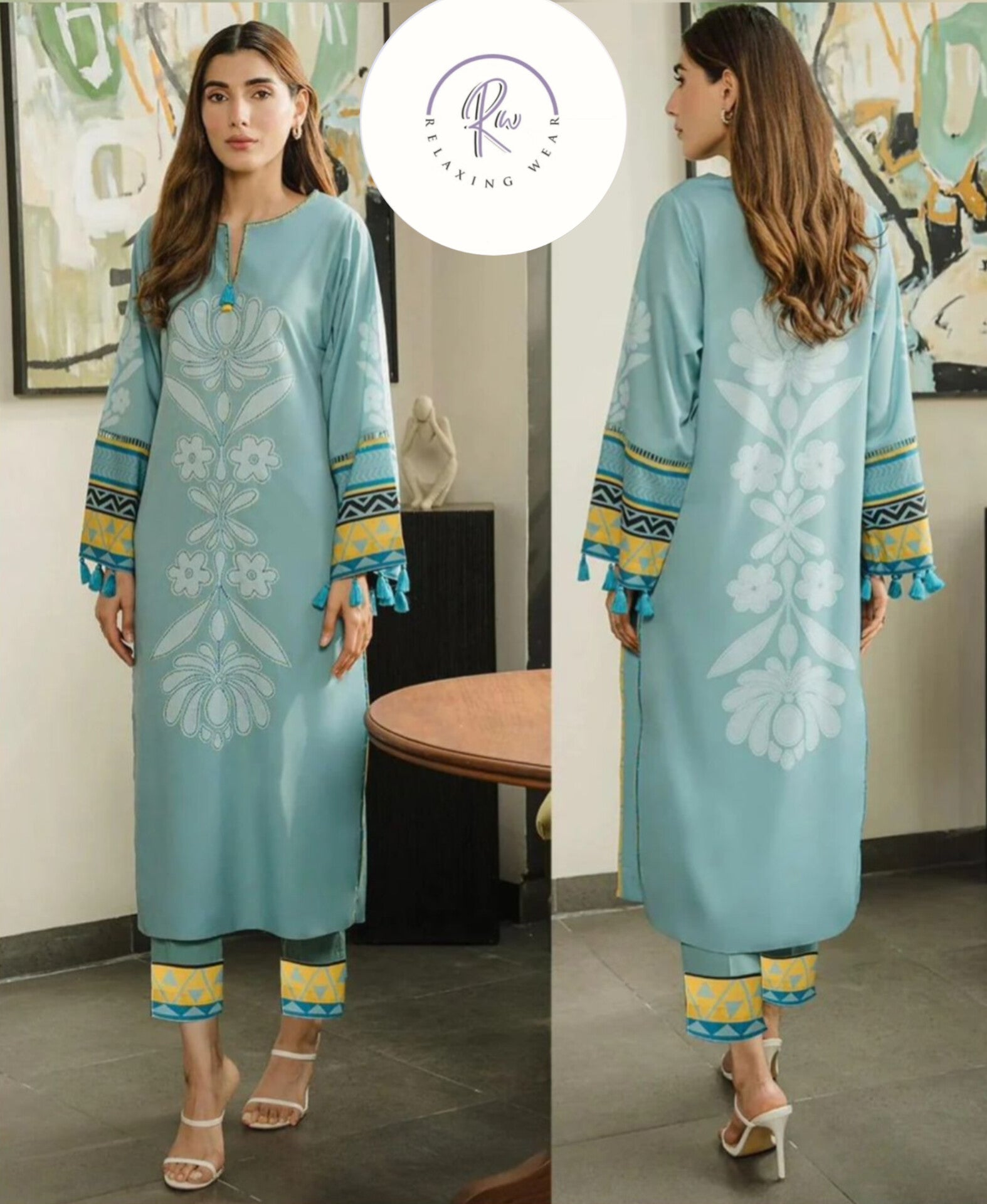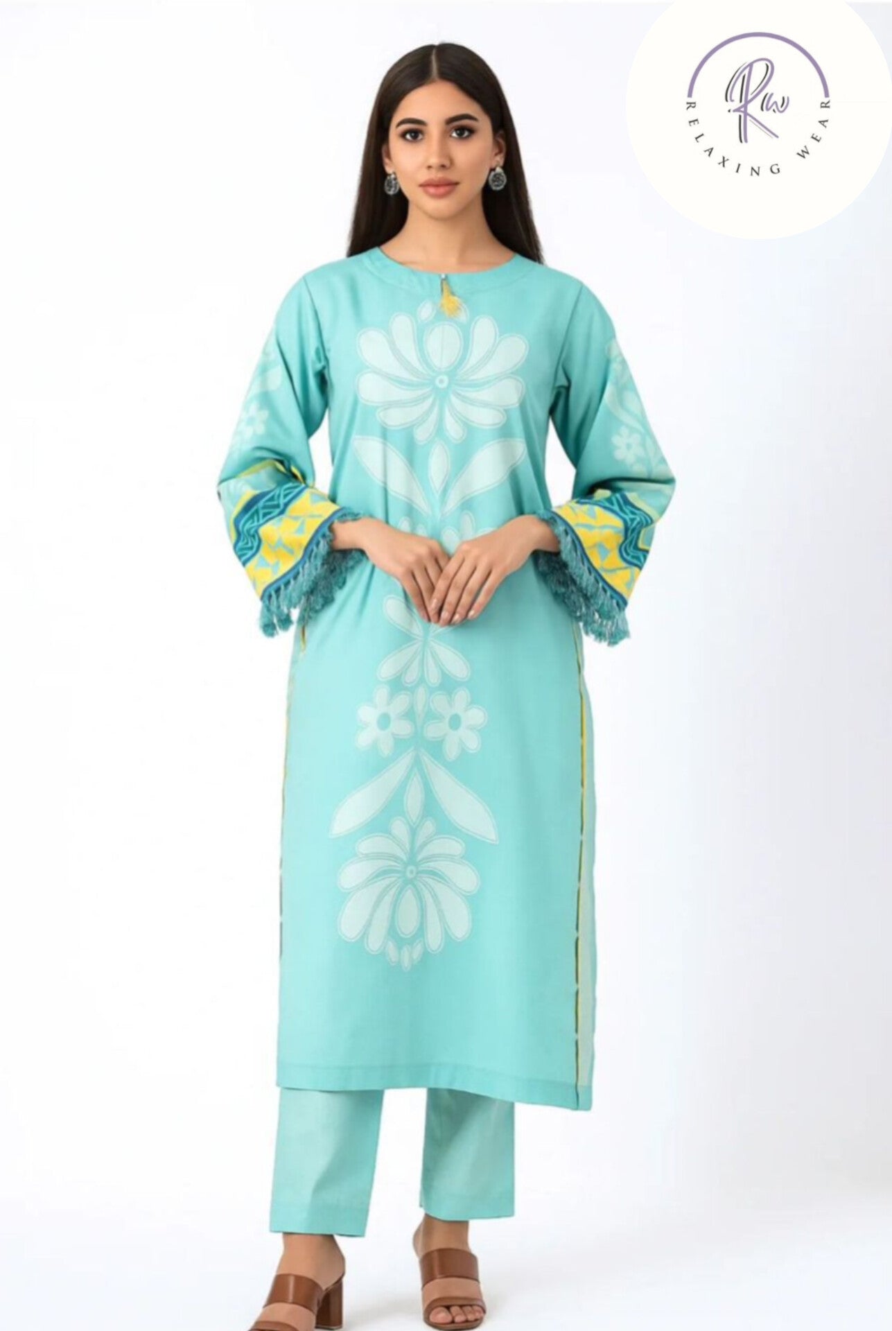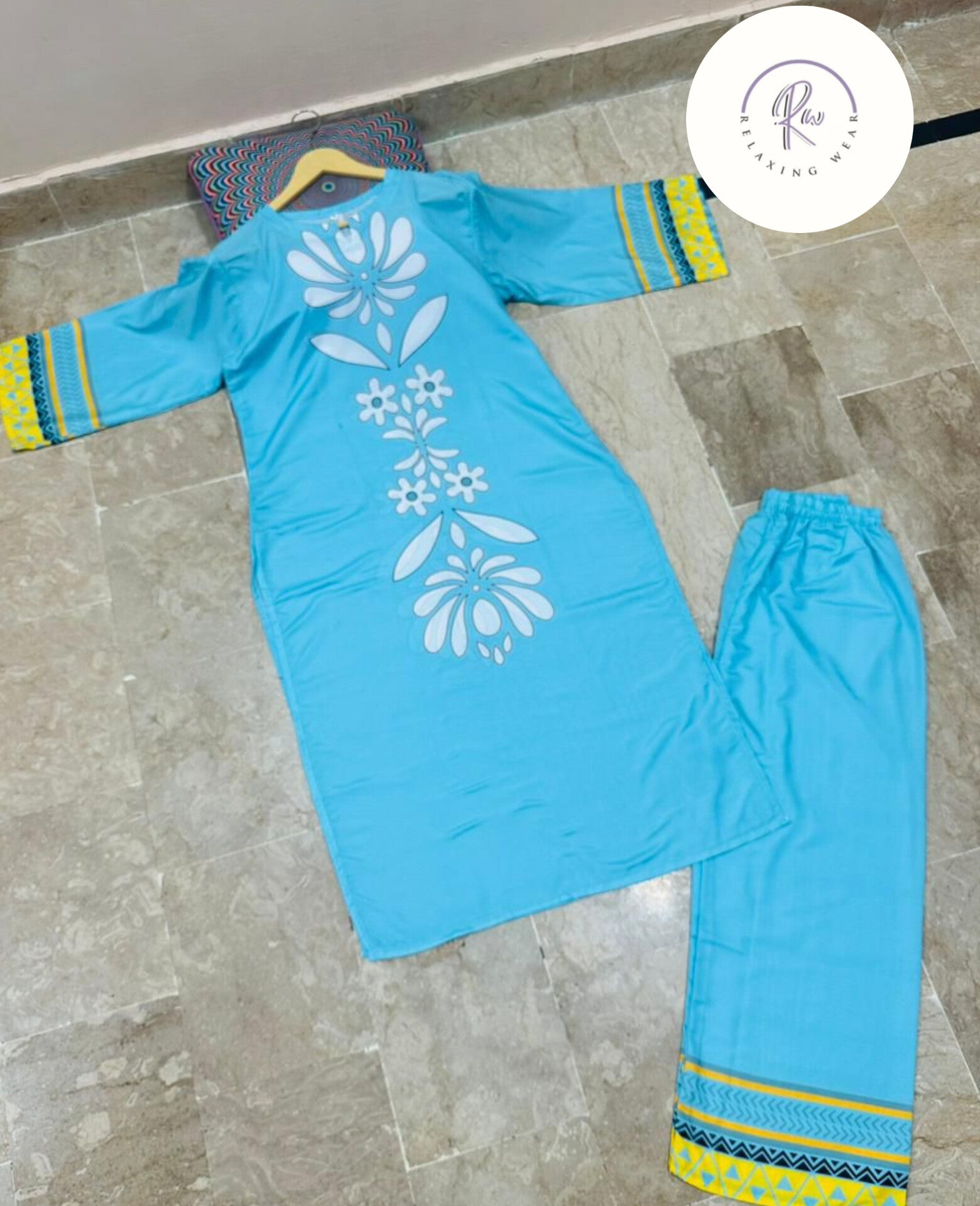 𩵠Soft Aqua Shade with Stylish Floral Design